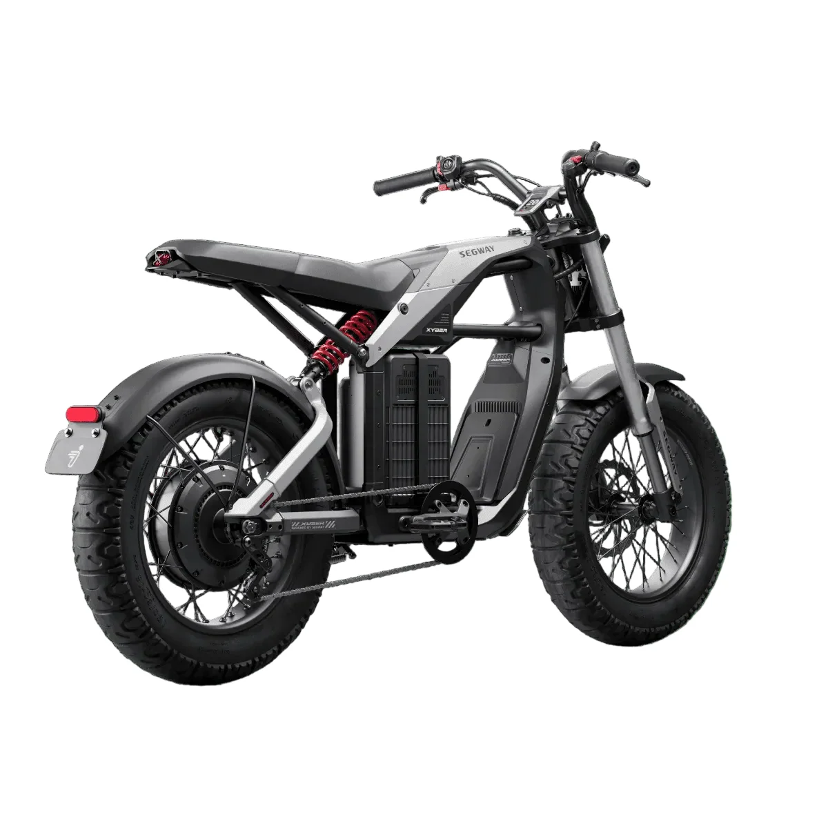 Unleash the ultimate off-road adventure with the Segway XYBER Electric Bike by Wilson's, a powerful e-bike designed for exhilarating rides. Featuring a robust 6000W electric motor (with two batteries) and an impressive 112-mile range, this off-road electric bike delivers unmatched performance and thrilling speed. Furthermore, its advanced suspension and hydraulic disc brakes ensure a smooth, controlled, and safe journey across diverse terrains. Experience superior power and extended exploration with the XYBER, your ideal companion for challenging trails.